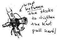 7. Tightly wrap around the knot ~ that is, between the pieces of bamboo, and tie. This should tighten the knot. | ||||||||||||||