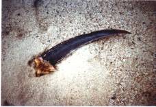 restaurant. They must have been in the parade. After breakfast we took a taxi to the beach. We couldn't go swimming there because there was an undertow. But we could go beach combing and there were a lot of cool things on the beach.We found baleen, part of a dolphin's spine and lots of shells. |