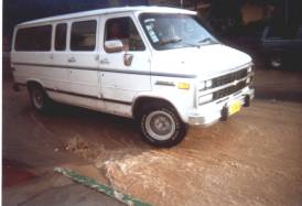 | When we got back to town the roads were covered with water. Since it rarely ever rains they don't have much drainage for the water to run out. Then he dropped us off at the Lorimar. When we got inside of our hotel room all of our stuff that was on the floor of our hotel room was wet. After we hung all of our stuff up to dry we went out for a small dinner, since we had a big lunch we weren't that hungry. We found a nice place to eat with two men waiters dressed as women serving us. After we were done with our tacos we got some Mexican ice cream and went back to our hotel. |