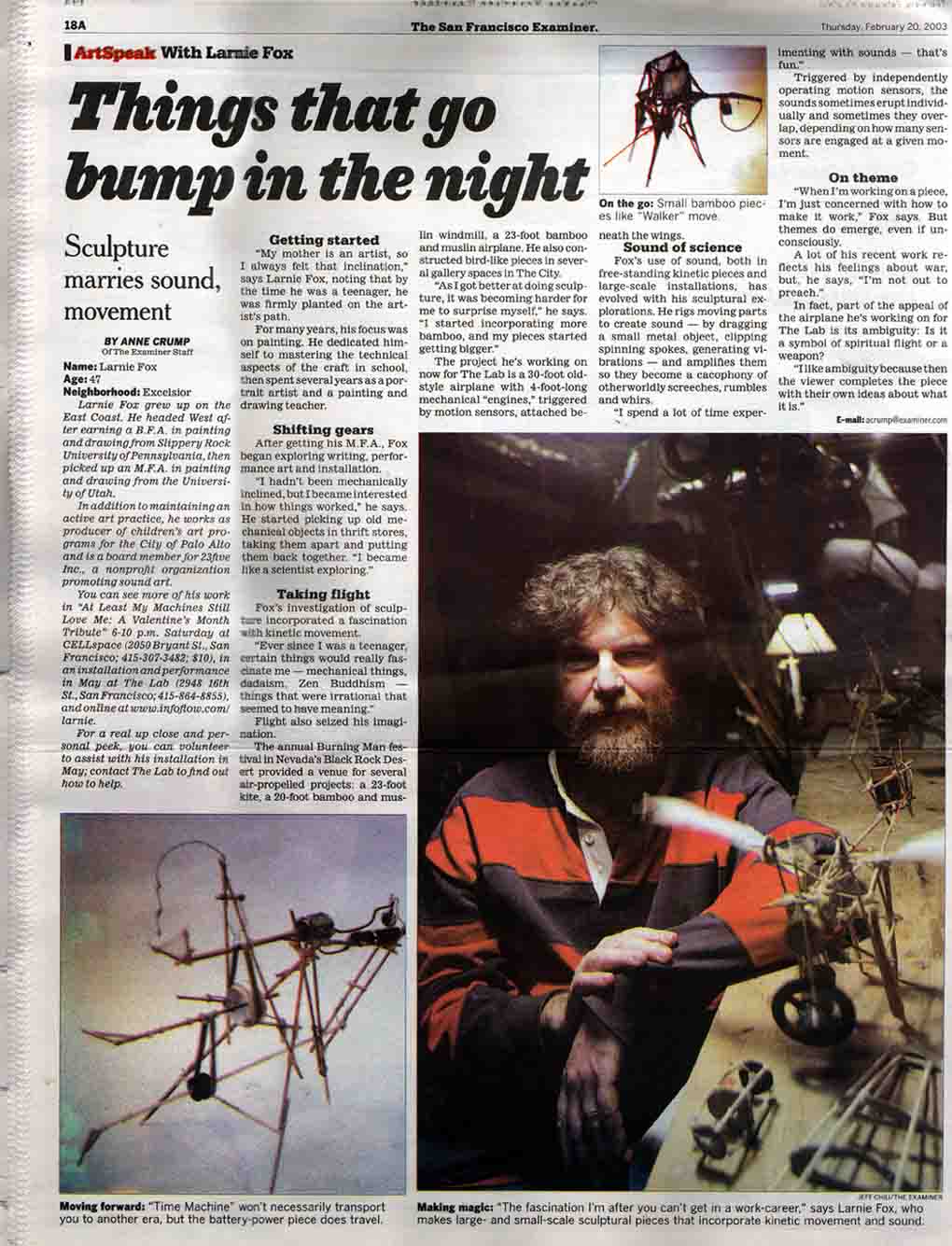 Anne Crump, of the San Francisco Examiner wrote a decent article about my work. |